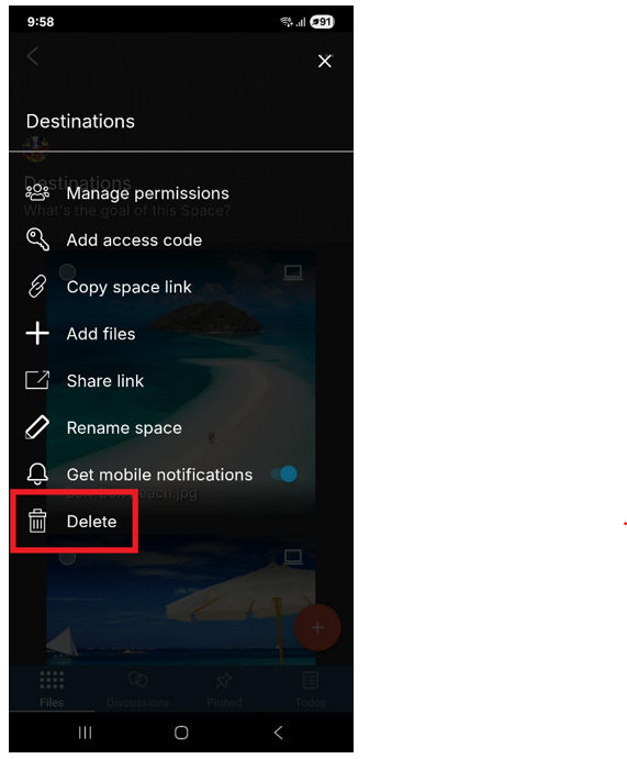 Here’s a guide on how to delete created or shared spaces in your Hightail Android application: