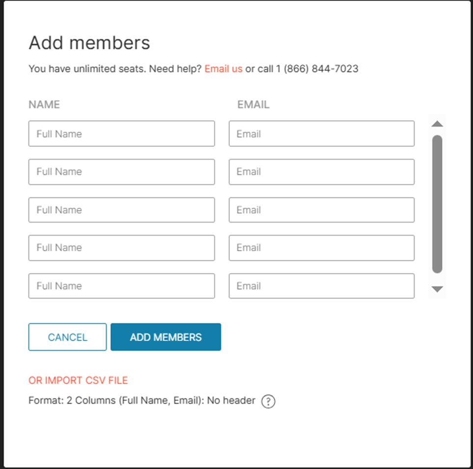 Manually add members or import a .csv file.