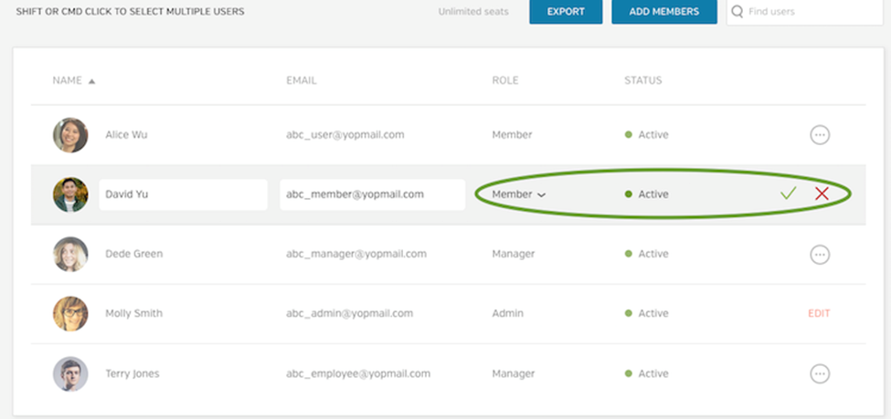 You can view the user status, re-invite users, add, and disable users at any time. You can also assign the role they hold in your company's Business account. This can be done by clicking on the circle button with three horizontal dots inside.
