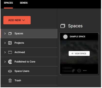 In your Hightail Dashboard go to Spaces.