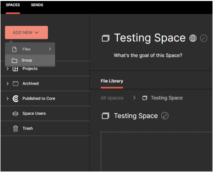 In the space, click Add New and select Group.