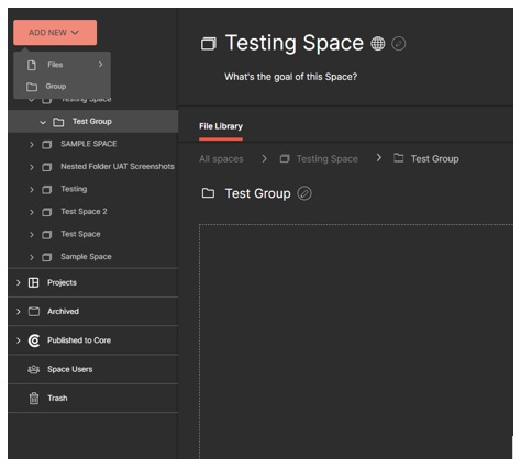 Once a Group is created, you can now upload files in the group.